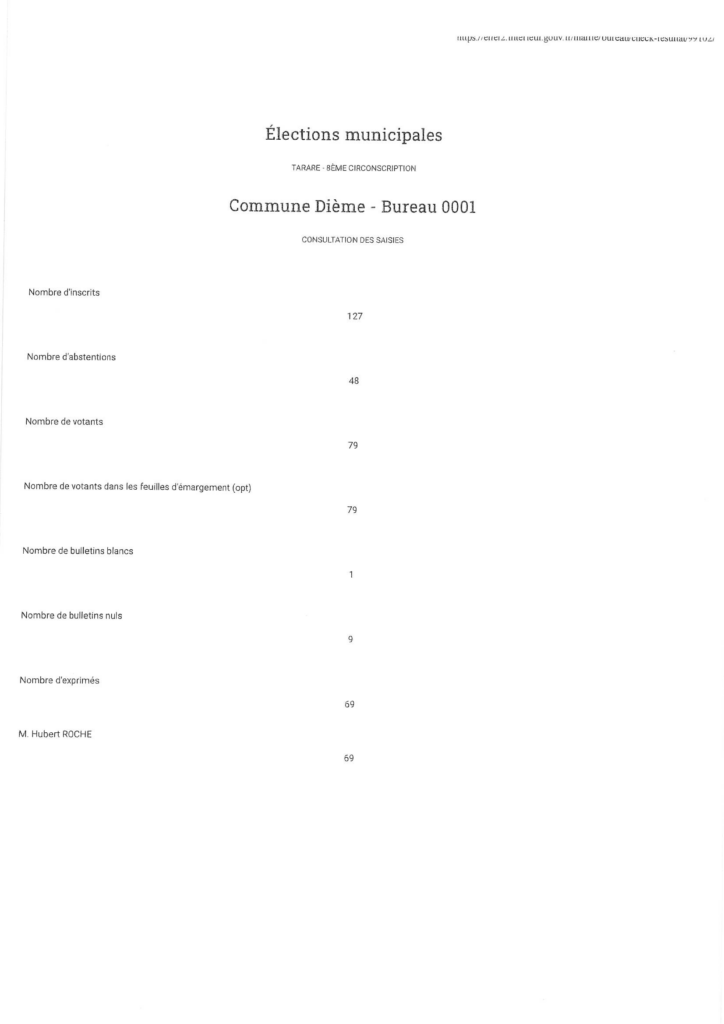 Résultat Election Municipale du 15 mars 2026 / Actualités / Par Commune de Dième Bonsoir Veuillez trouver ci joint les résultats définitifs